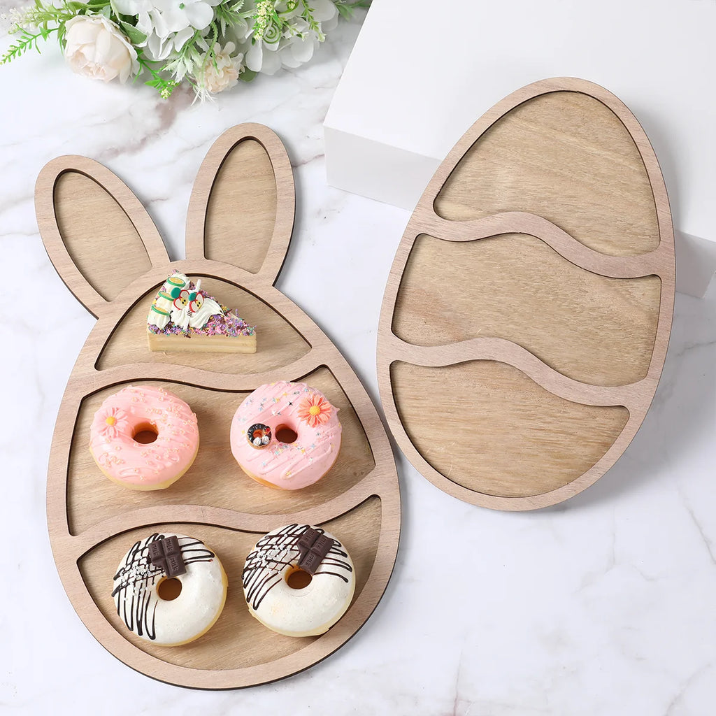 Wooden Easter Double Wavy Egg Rabbit Tray Happy Easter Party Decorations For Home 2025 Kids Favors Egg Bunny Pallet Snack Holder