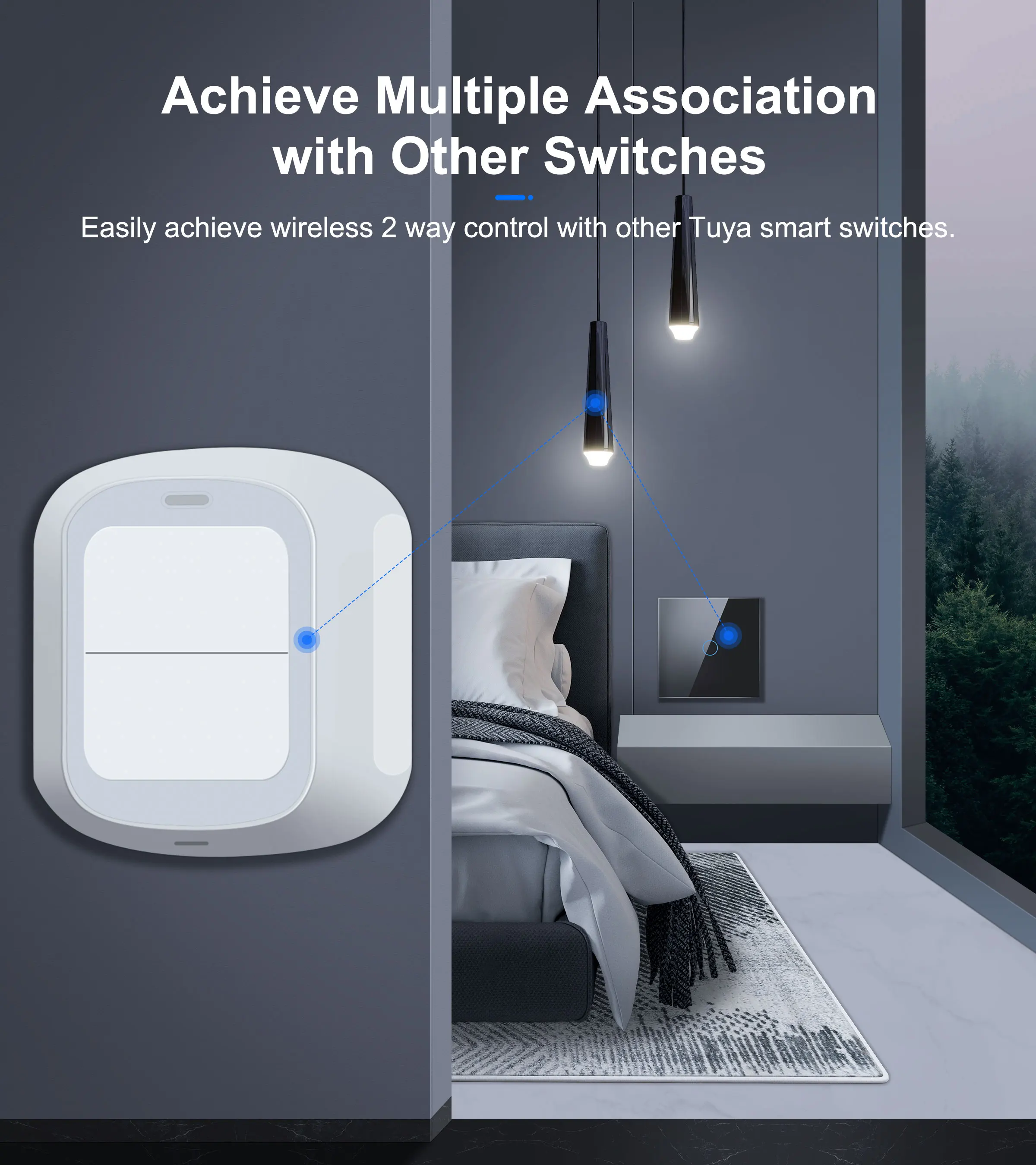Easily achieve wireless 2 way control with other Tuya smart switches.