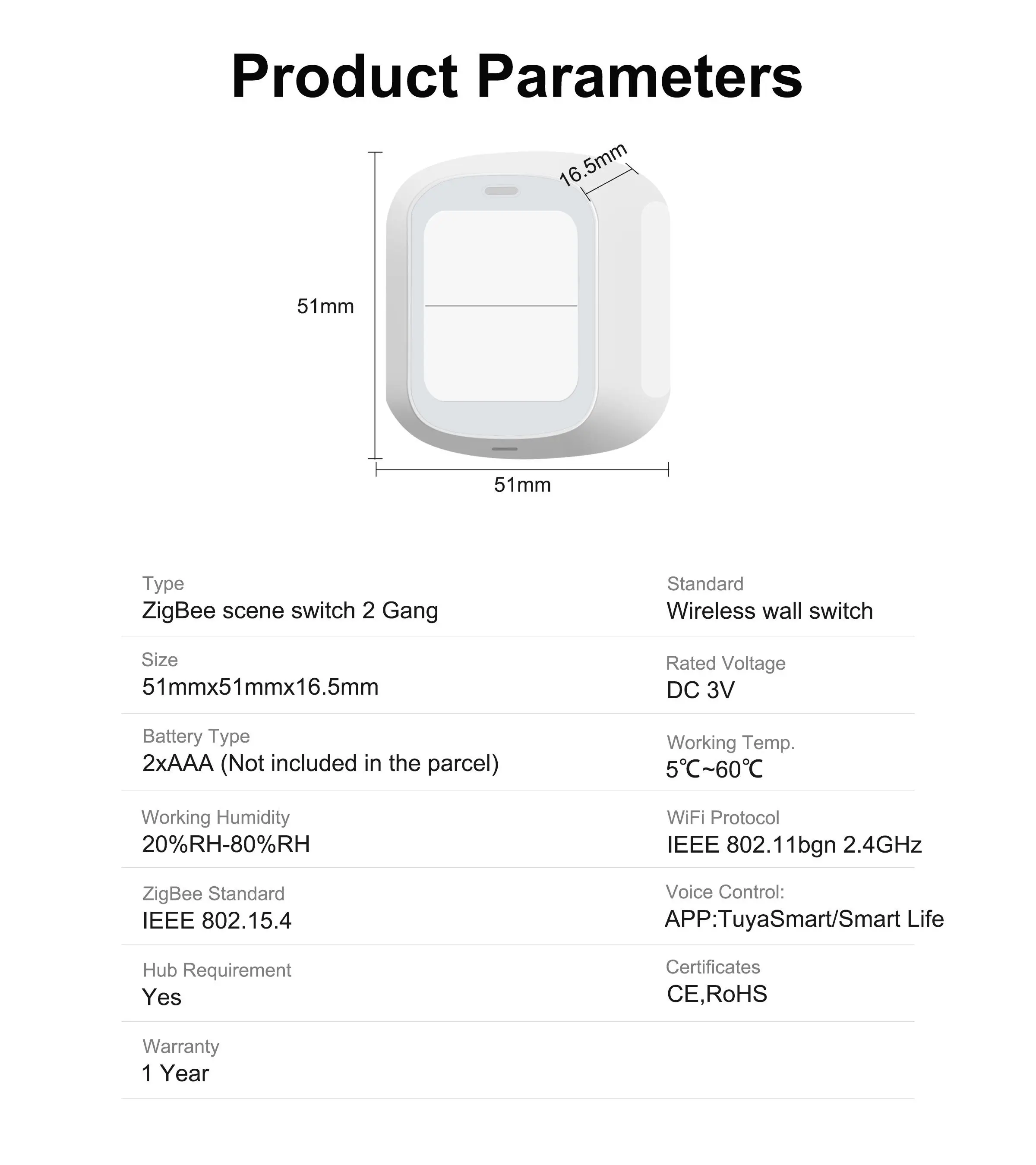 1. Please be aware that the ZigBee scene switch version requires the Tuya ZigBee hub for pairing and app control. The WiFi version does not require an additional Zigbee gateway.