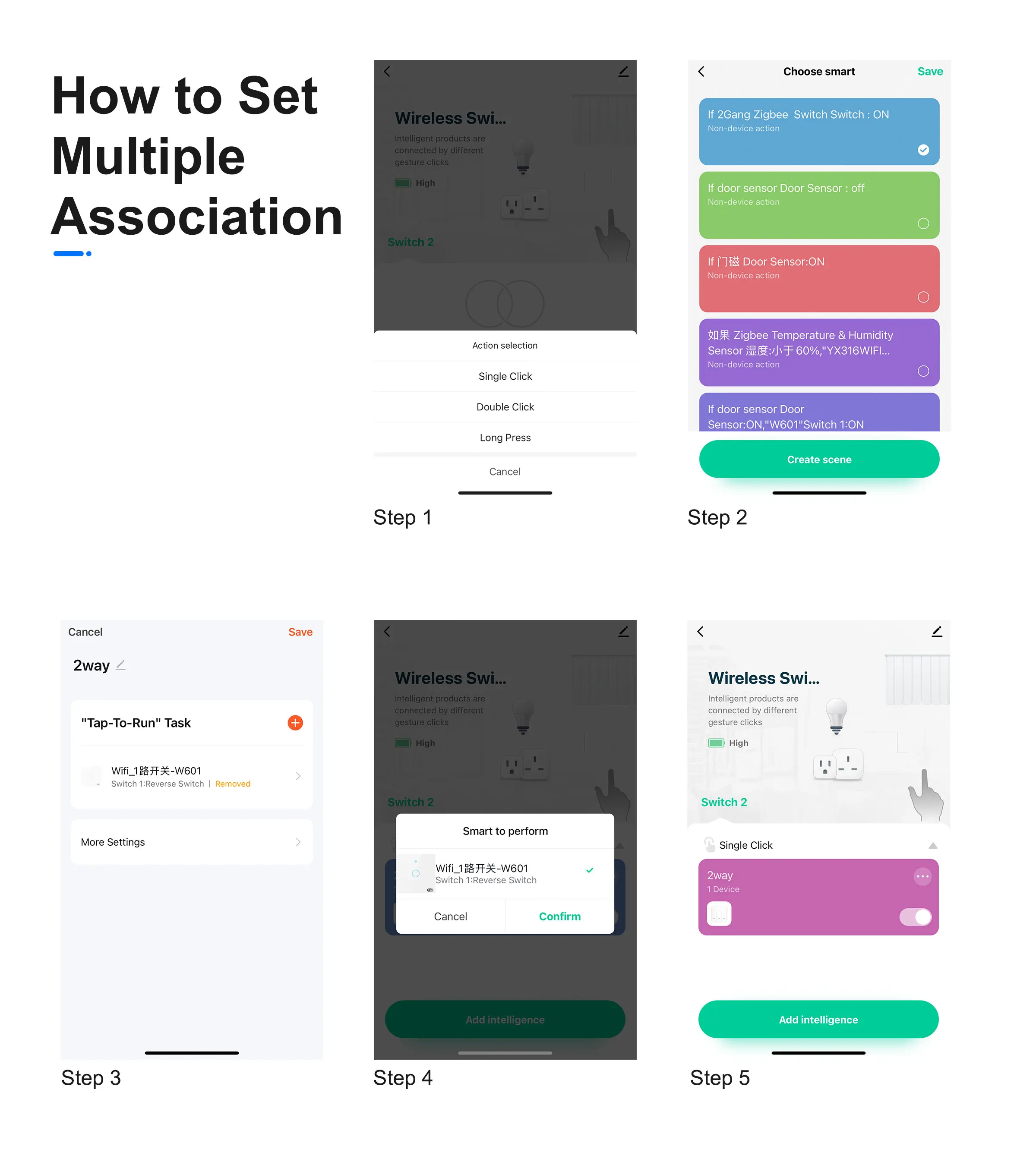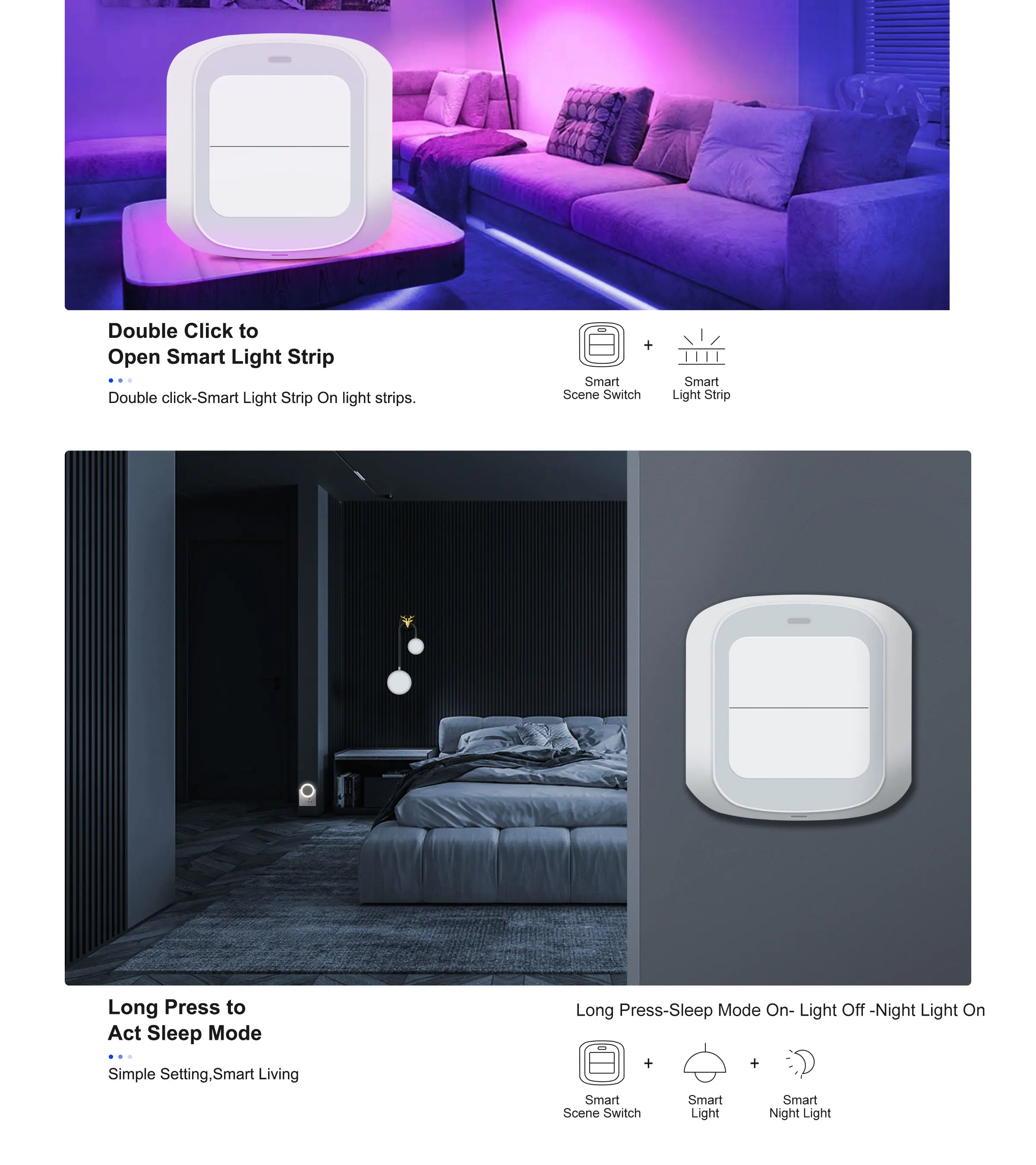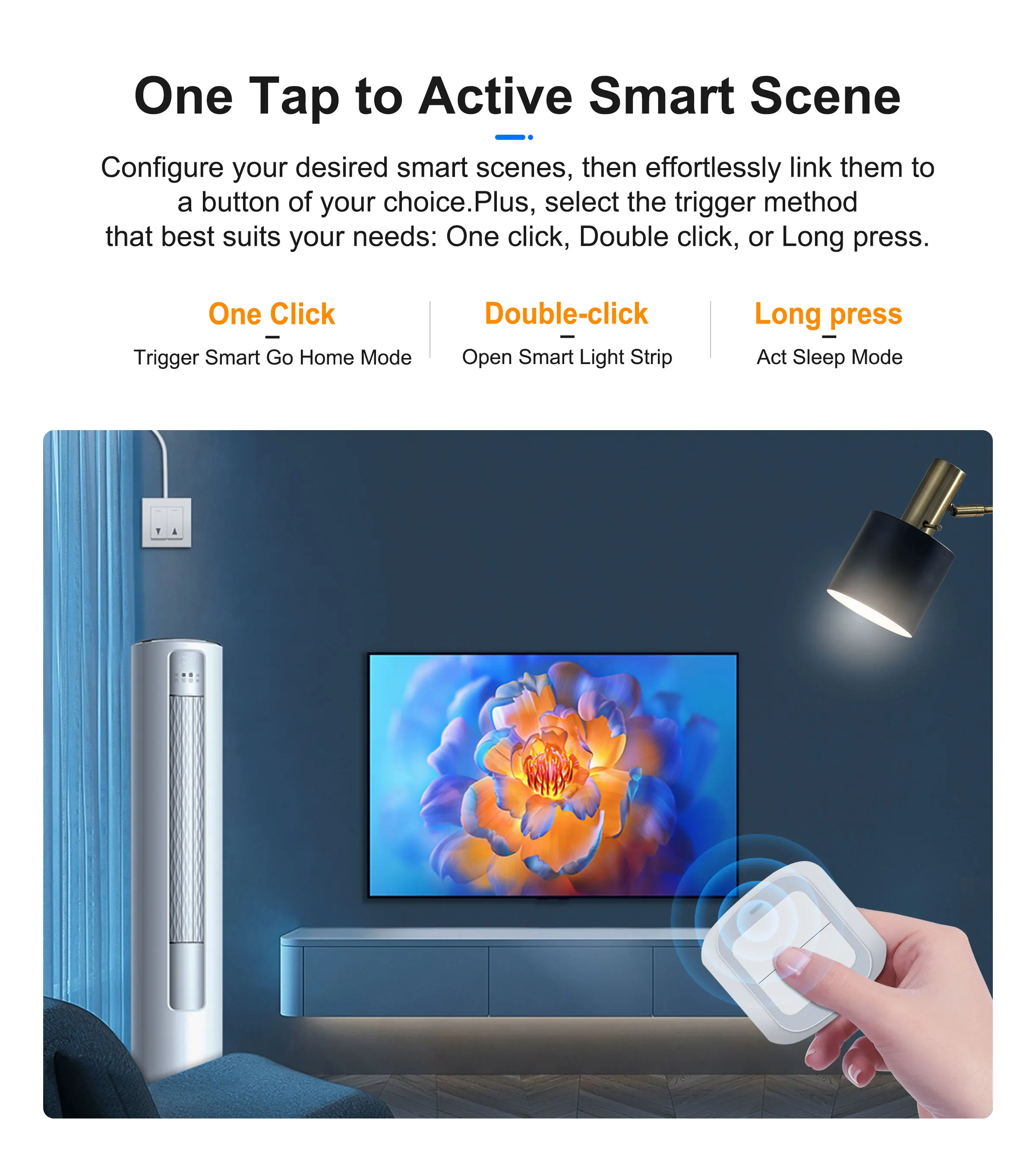 Configure your desired smart scenes, then effortlessly link them to a button of your choice. Plus, select the trigger method that best suits your needs: One click, Double click, or Long press.