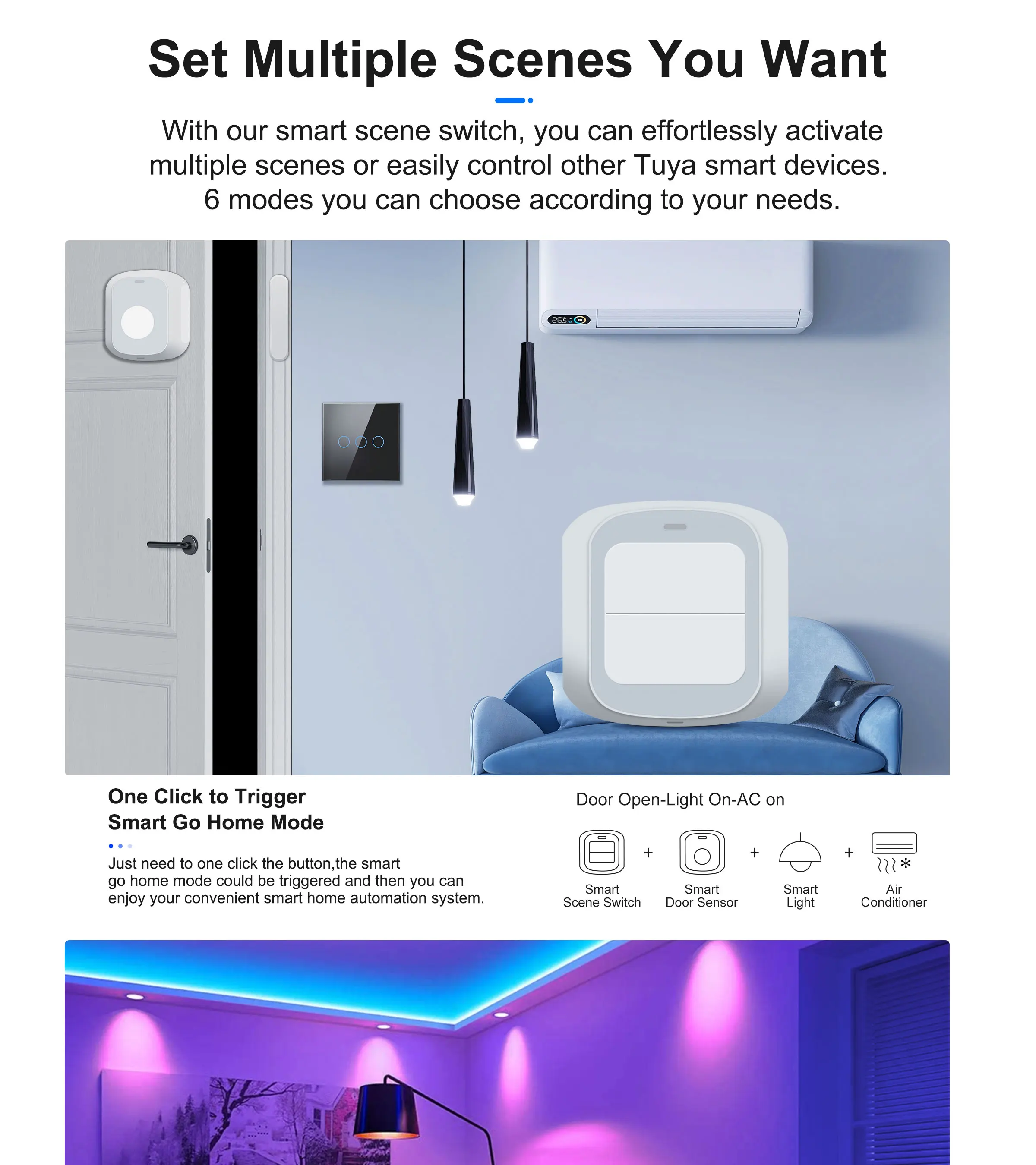 With our smart scene switch, you can effortlessly activate multiple scenes or easily control other Tuya smart devices.