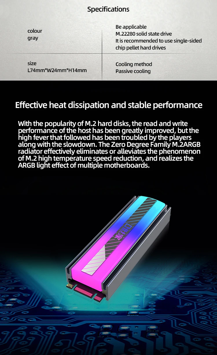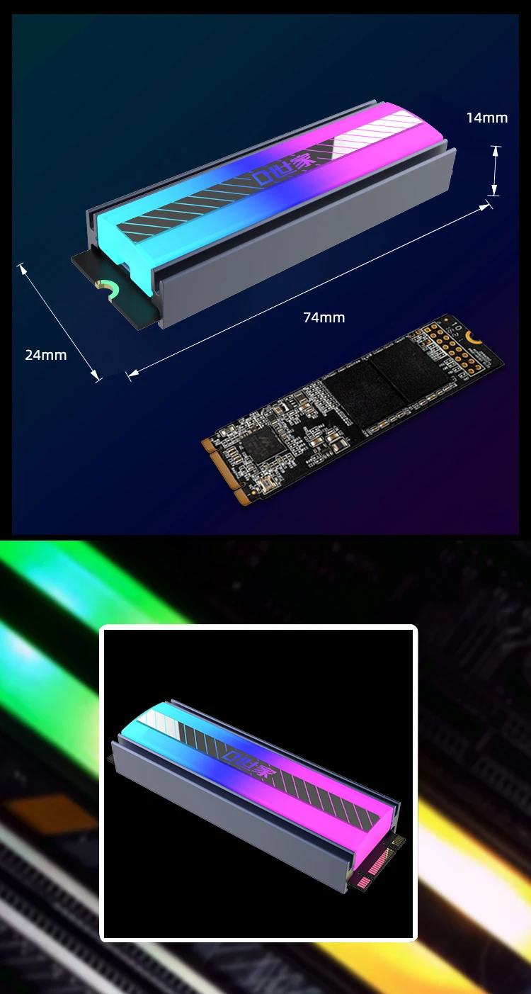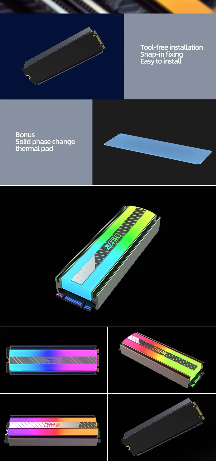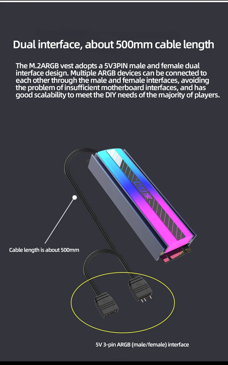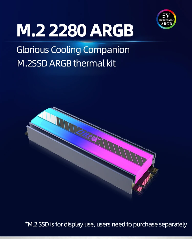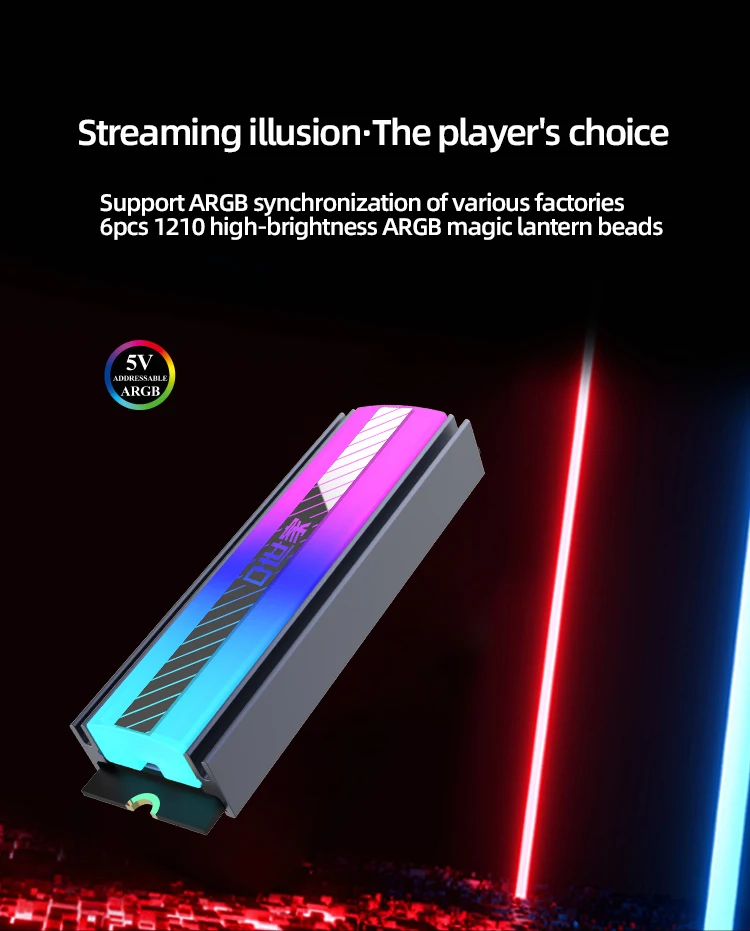 TEUCER M.2 NVME SSD Heatsink 5V 3Pin ARGB Colored Lights 2280 Solid State Drive Cooler