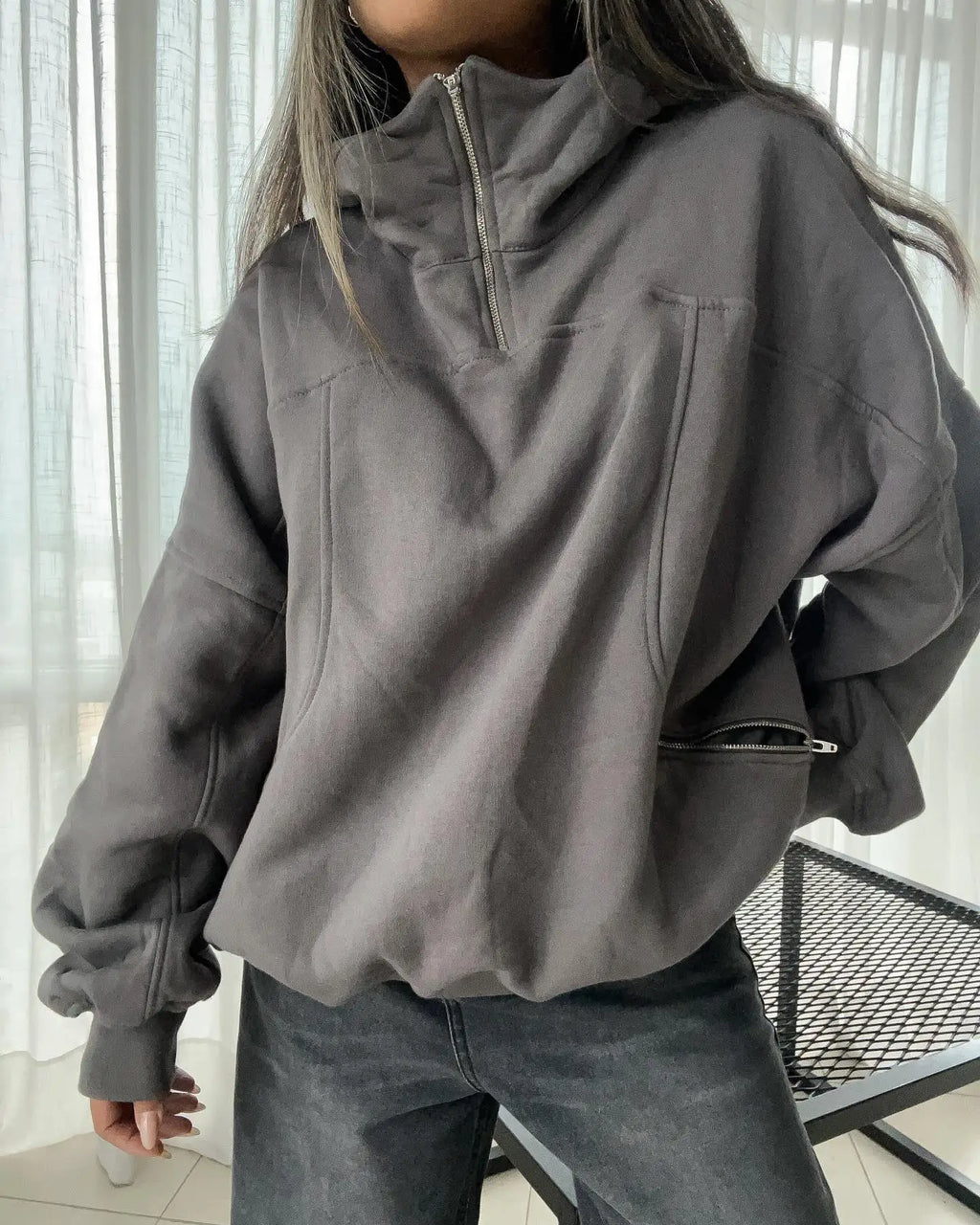 Harajuku Solid Color Zip Up Hoodie Retro Punk Y2k Hoodies Fashion Hip Hop Men Women Stand Collar Sweatshirt Hoodie Streetwear