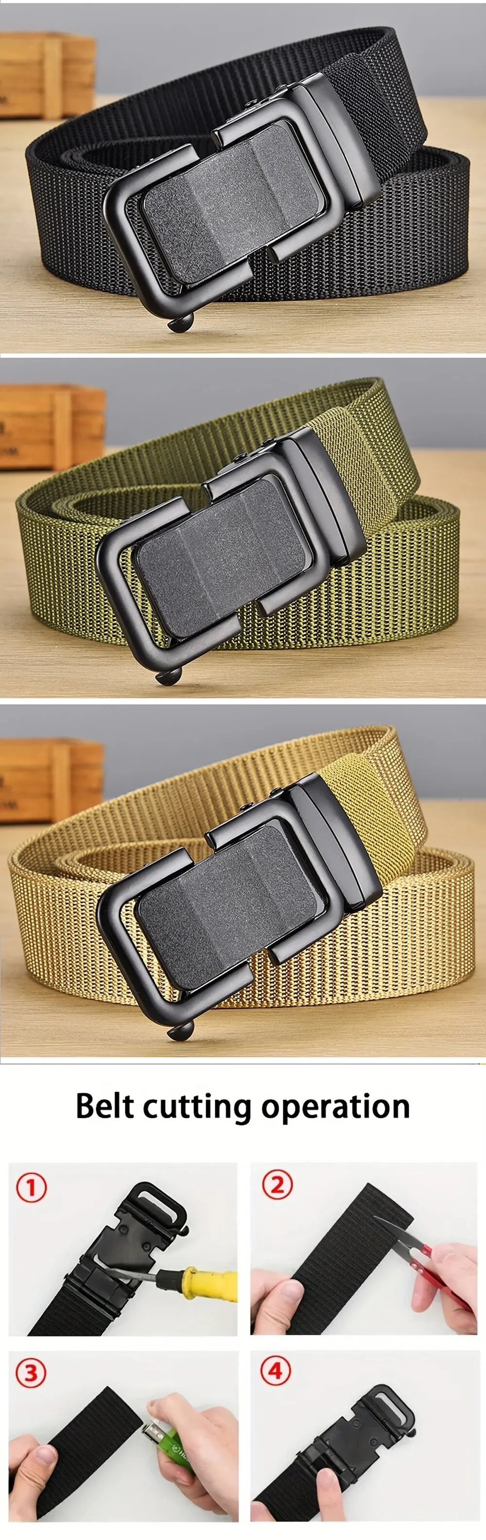 Men's Belt Automatic Metal Buckle Imitation Nylon Webbing Outdoor Work Belt Toothless Automatic Buckle Casual Sports Canvas Belt