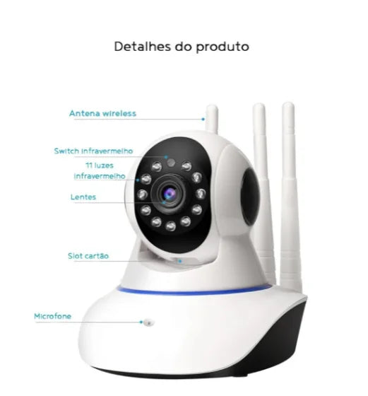 Câmera sem fio, realizando conexão via wifi, trazendo total praticidade para seu dia-a-dia.