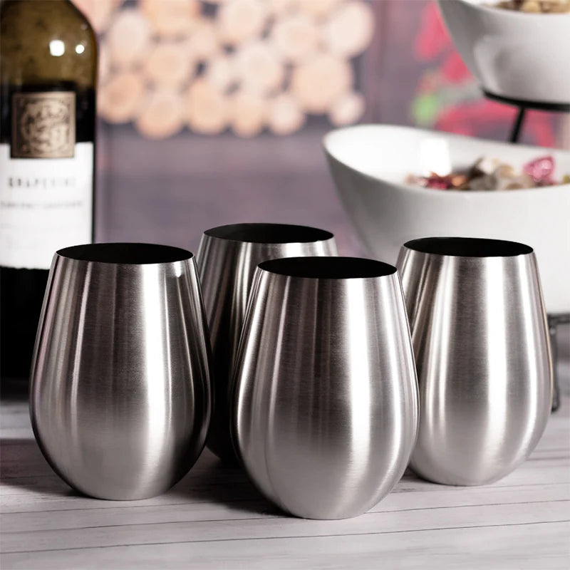 This pack of 4 stainless steel wine glasses is the perfect way to enjoy your favorite beverage.