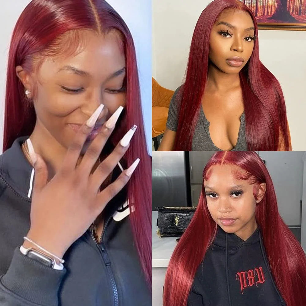 99J Burgundy Straight 13x4 Hair Lace Front Wig Human Hair Wigs Pre-Plucked Red Colored Lace Front Human Hair Wigs for Women