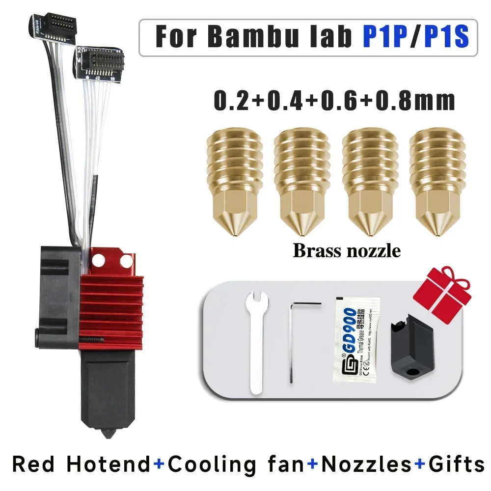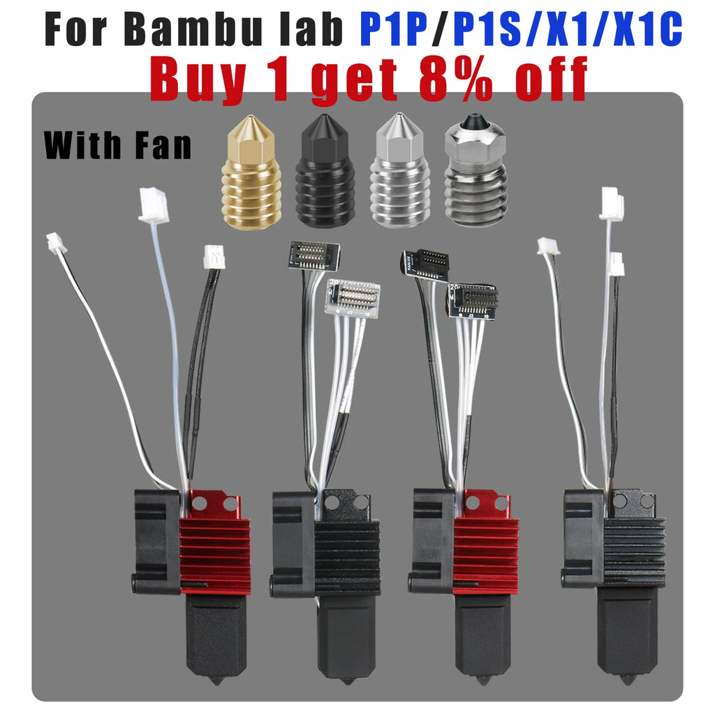 For Bambu P1P/X1C Hotend Kit Hardened Steel Nozzle for Bambulab P1s Upgrade Hotend With Fan Complete for Bambu Lab X1 Carbon