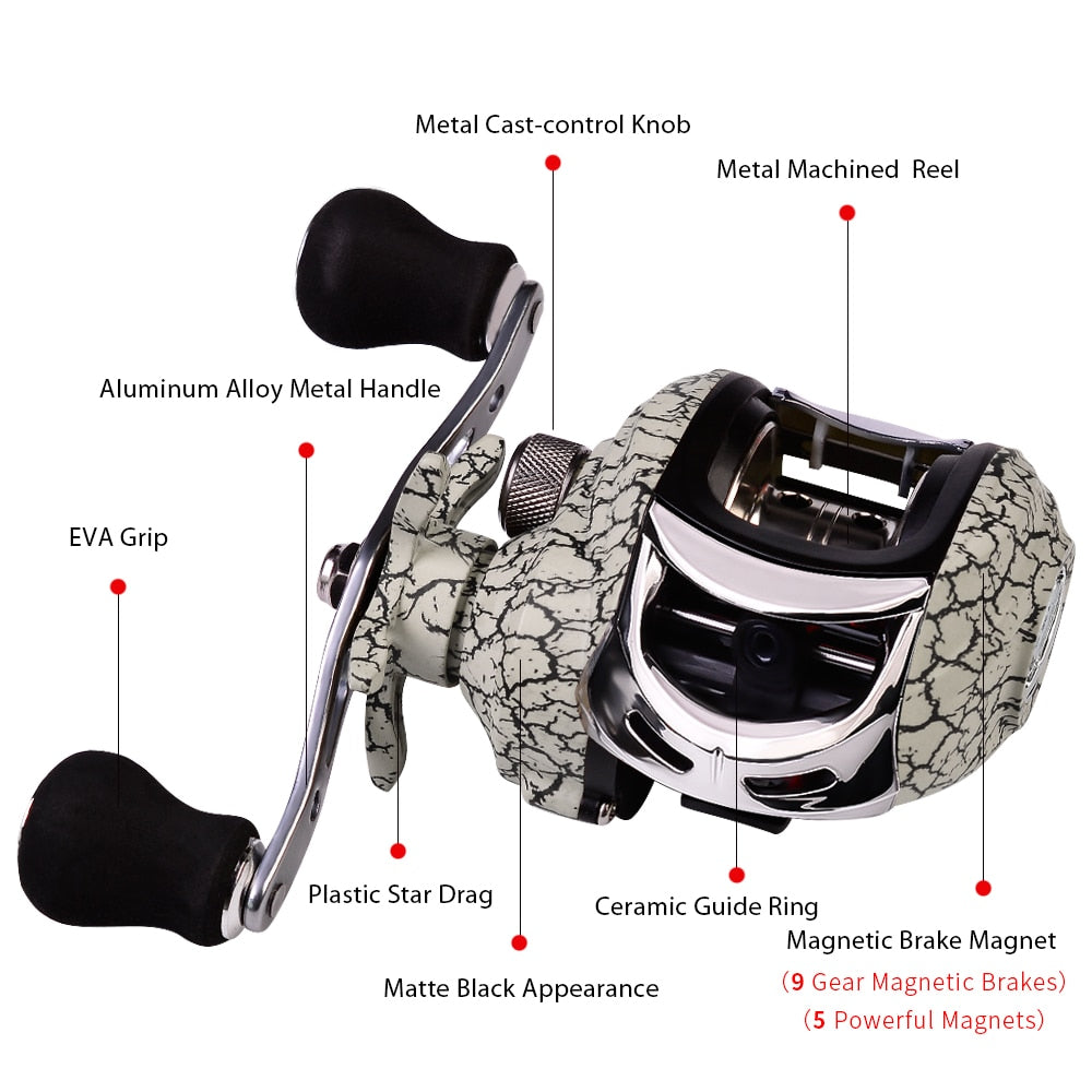 PROBEROS Fishing Reel 7.1:1/7.2:1 Carbon Shell Lightweight Magnetic Brake Max Drag 15LB-22LB Bait Casting Reel Fishing Tackle