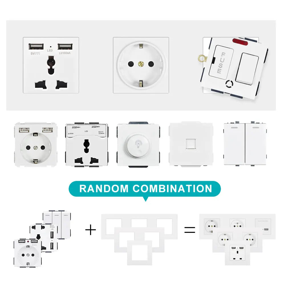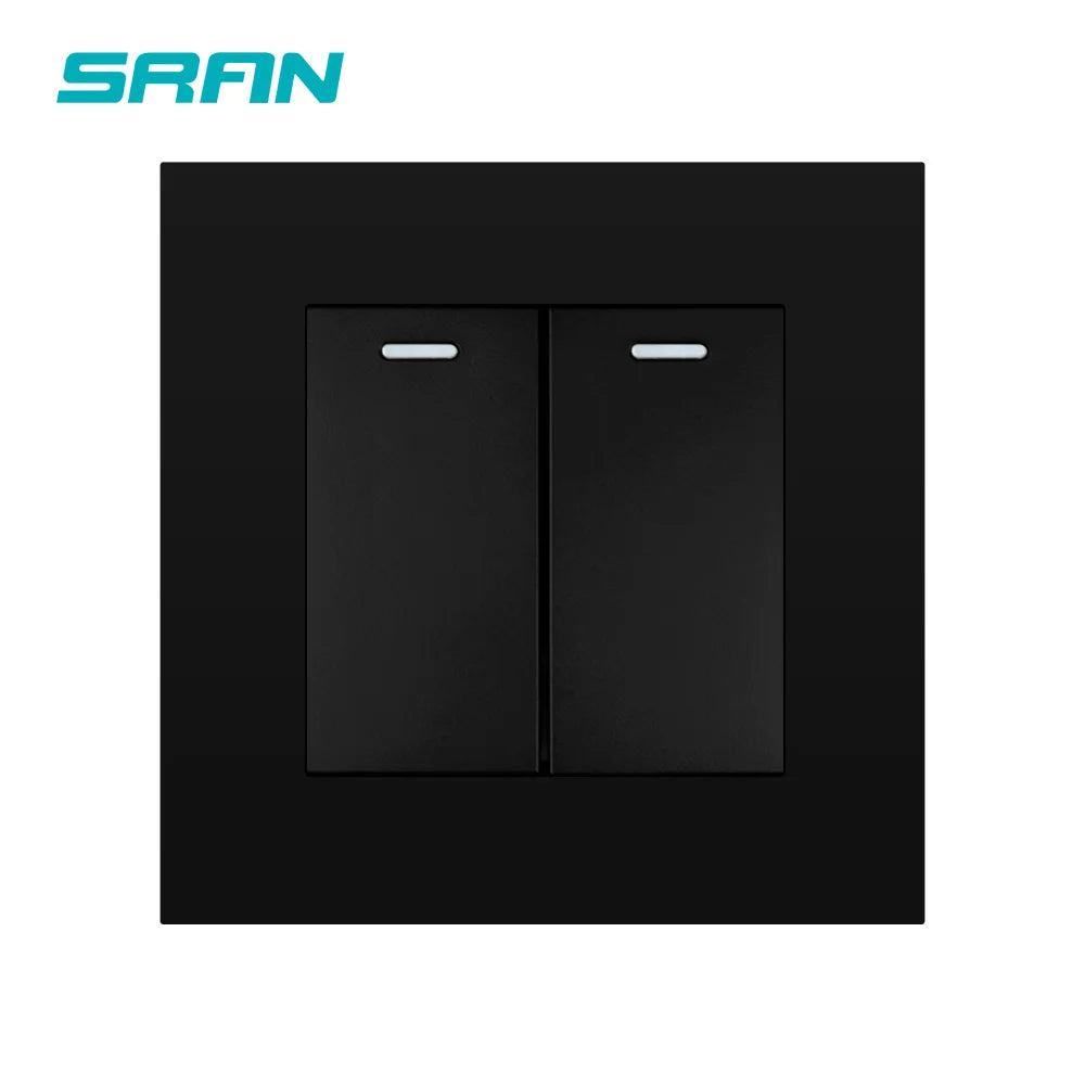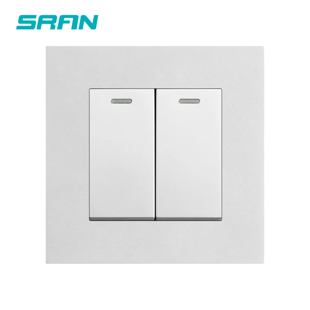 SRAN Wall Light switch 2gang 1/2way 16A 86mm*86mm white/black/gold/gray flame retardant pc panel with iron plate rocker switch
