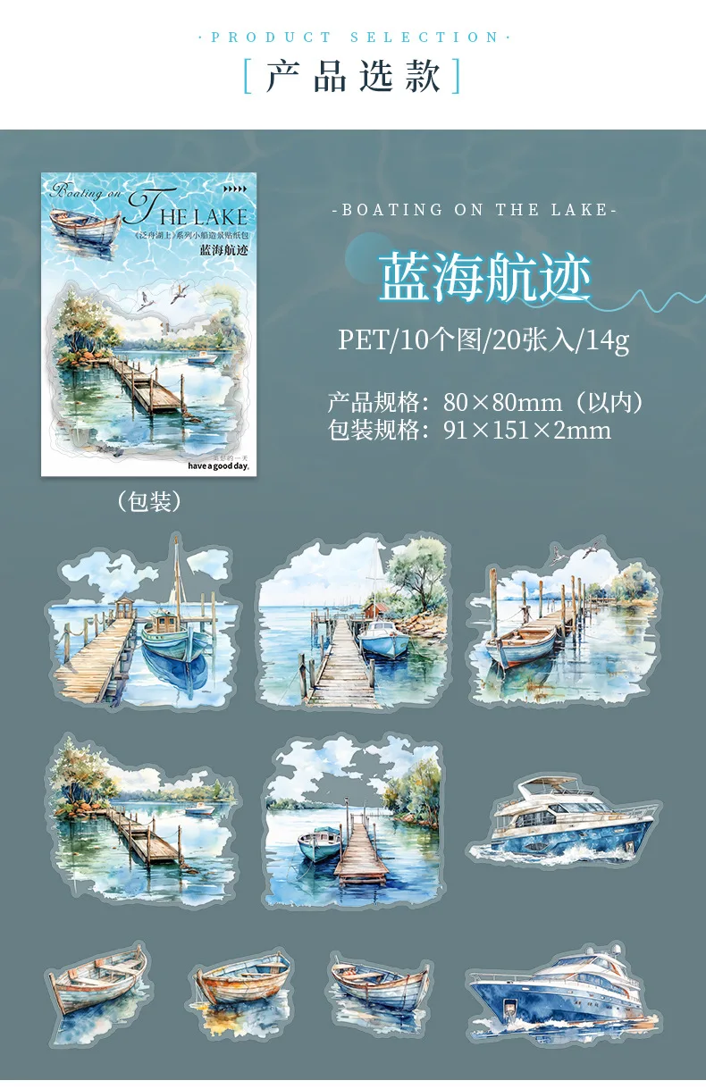 20pcs/1lot Kawaii Scrapbook Sticker canoeing on the lake Scrapbooking Supplies Planner Decorative Craft Stationery Sticker