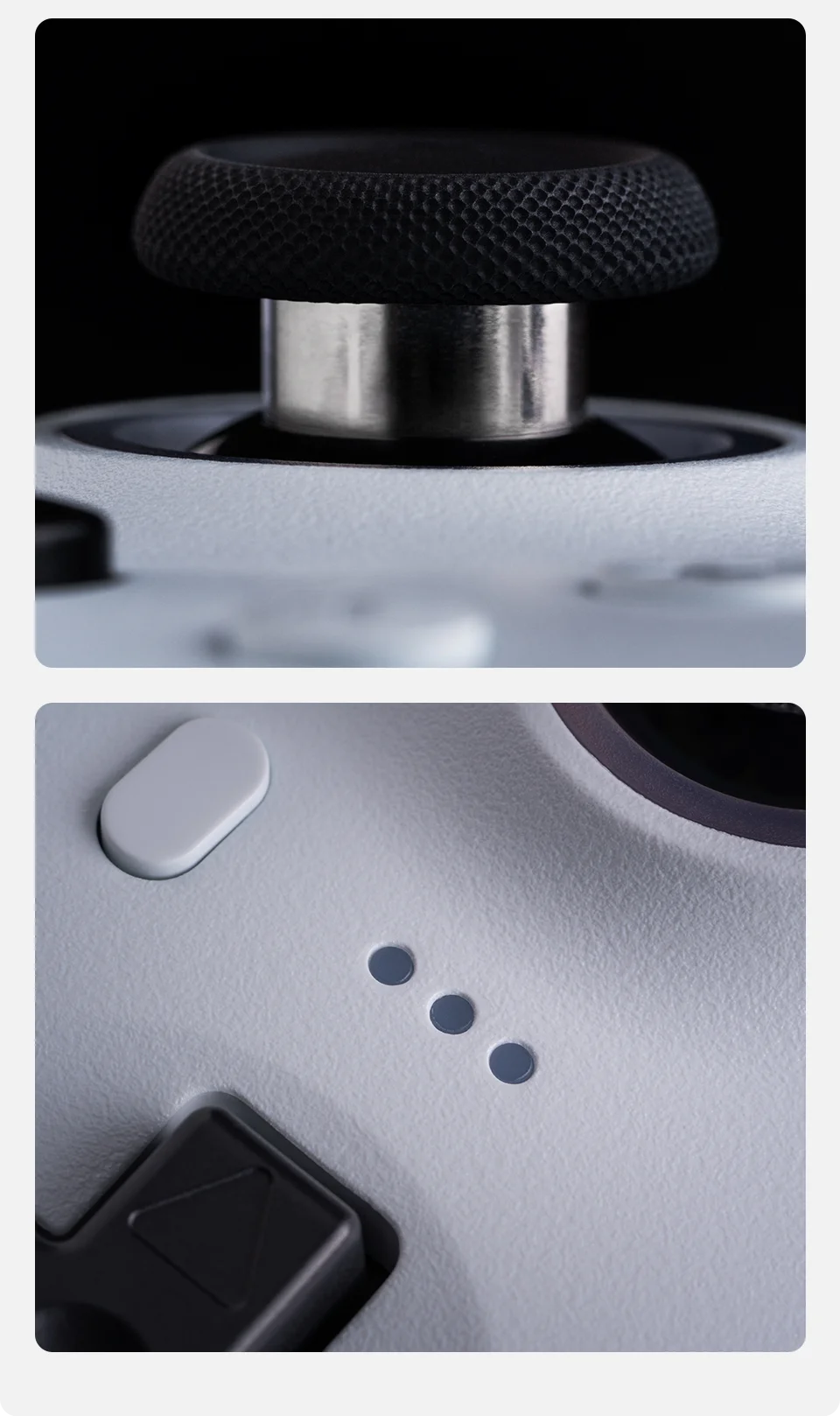 The first 8BitDo controller to feature market-leading TMR joysticks, offering higher sensitivity, greater precision, and enhanced durability—all while consuming less power. Equipped with a 12-bit ADC sampling chip.