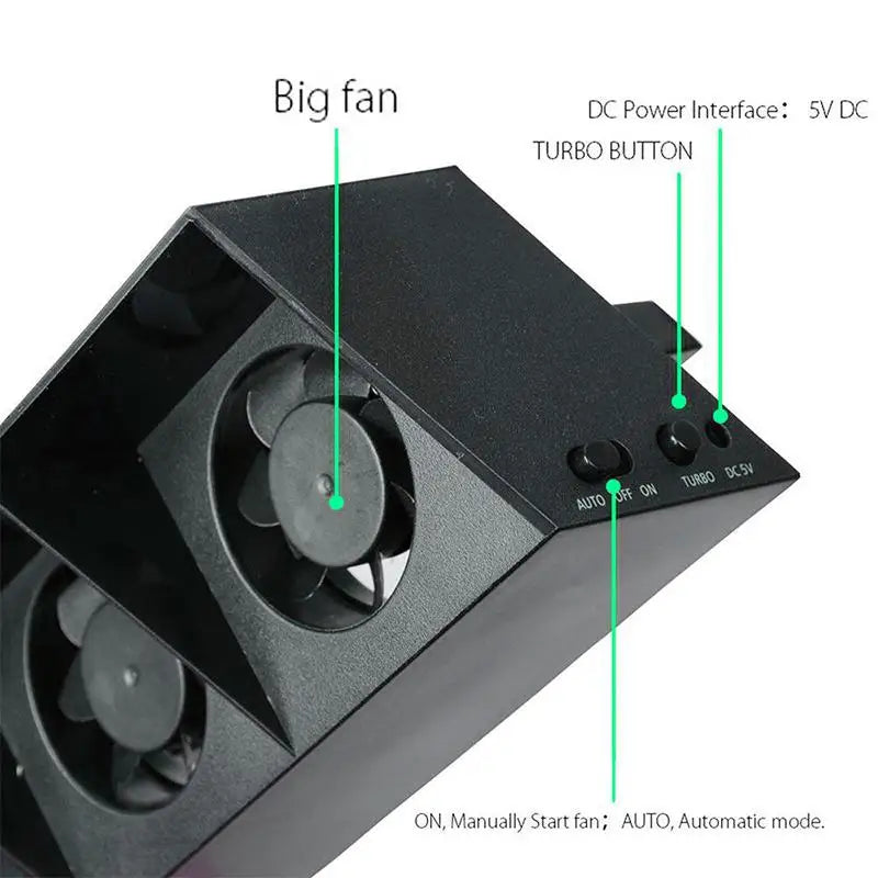 For PS4 Console Cooler,Cooling Fan For PS4 USB External 5-Fan Super Turbo Temperature Control For Playstation 4 Console