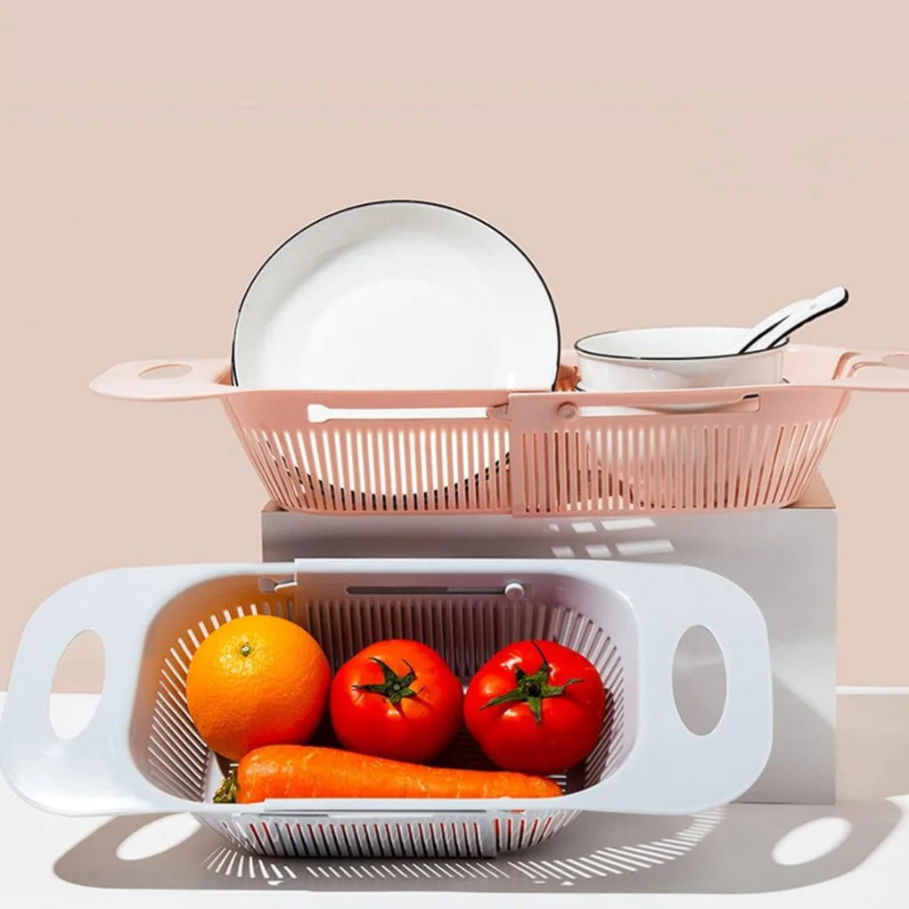 Retractable Sink Drainer with Handles and Adjustable Basket for Fruit and Vegetable Dishes Versatile Organization for Kitchen and Home