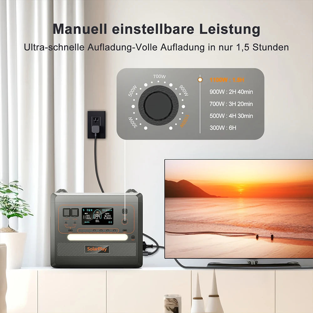The charging power can be set handily depending on the situation (when the voltage is unstable): 300w-500w-700w-900w-1000w.