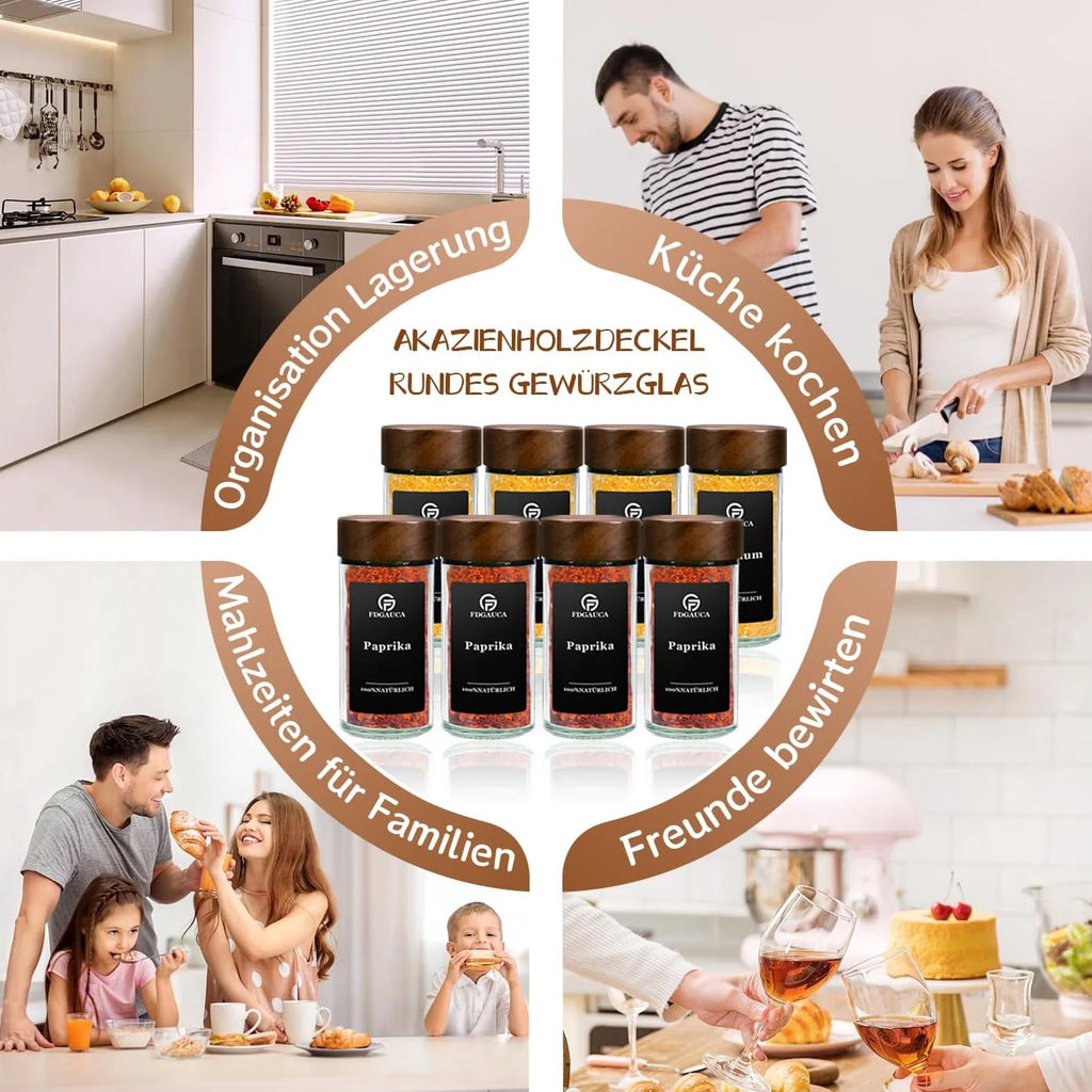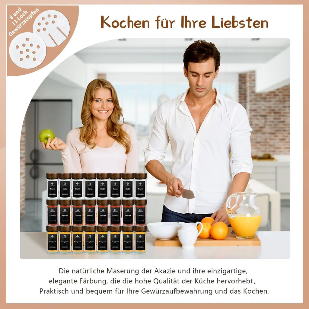 Die natürliche Maserung der Akazie und ihre einzigartige, elegante Färbung, die die hohe Qualität der Küche hervorhebt,Bestellen Sie ein Set von 12/24 gewürzgläser set für Ihren Schrank, gewürzregal .Praktisch und bequem für Ihre gewürze aufbewahrung und Kochen