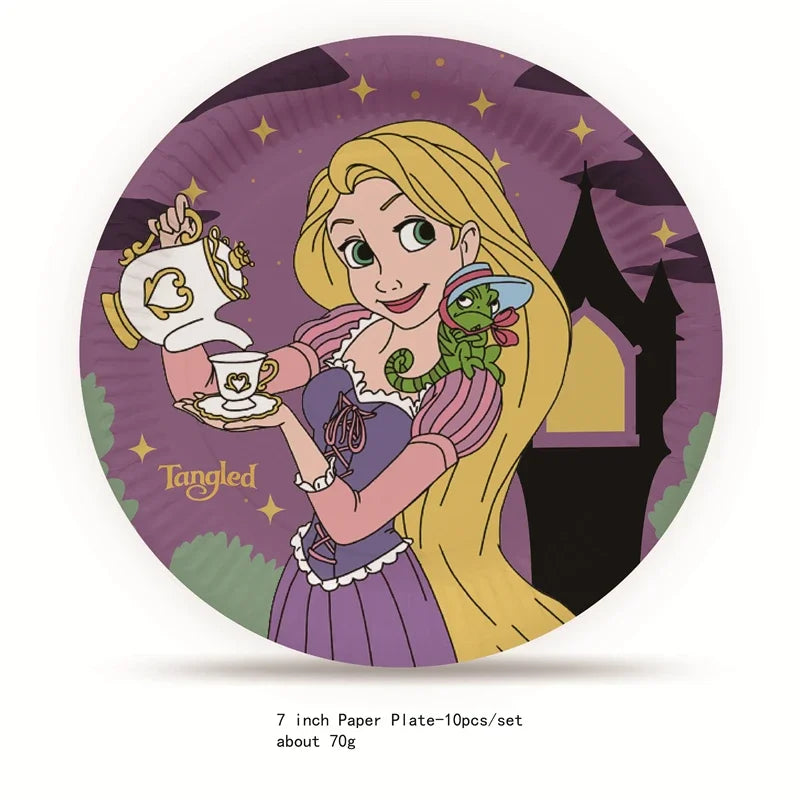 Anime Tangled Rapunzel Theme Party Supplies Tableware Paper Cup Plate Napkin Flag Baby Shower Balloons Birthday Party Decoration