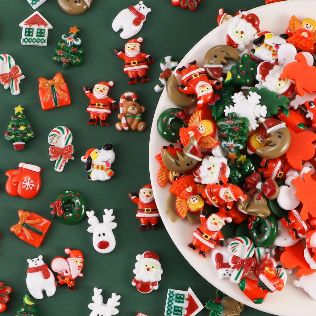 Mix Designs 30pcs Christmas Tree Shoes Snowman Gift Dessert Cartoon DIY Resin Flatback Cabochon Lucky Bag DIY Phone Case Beauty