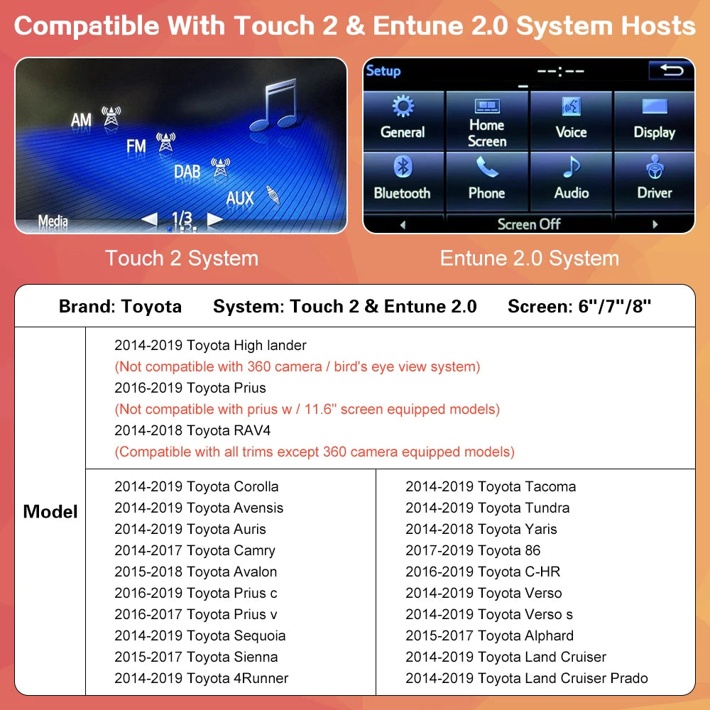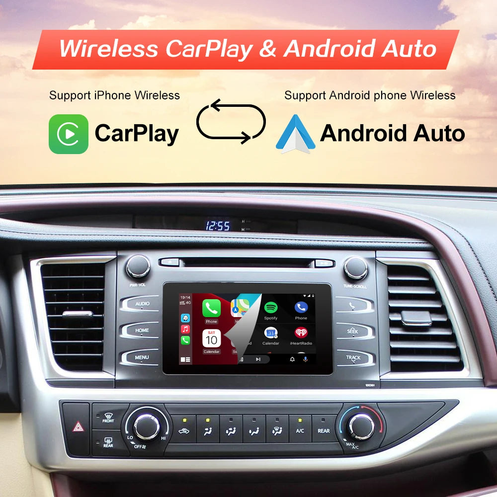 Wireless Apple CarPlay, Wireless Android Auto, Wireless Phone Mirroring for Toyota Highlander, Prius, RAV4, Corolla, Avensis, Auris, Camry, Avalon, Sequoia, Sienna, 4Runner, Tacoma, Tundra, Yaris, 86, C-HR, Verso, Alphard, Land Cruiser (2014-2019)