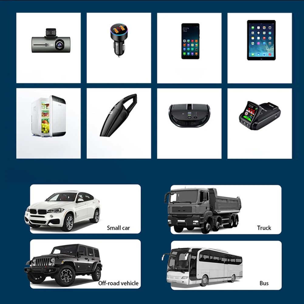 * Stainless steel spring buckle, not afraid of shock, stable charging, added points for peace of mind. Suitable for 12V-24V: car, SUV, off-road, truck, etc.
