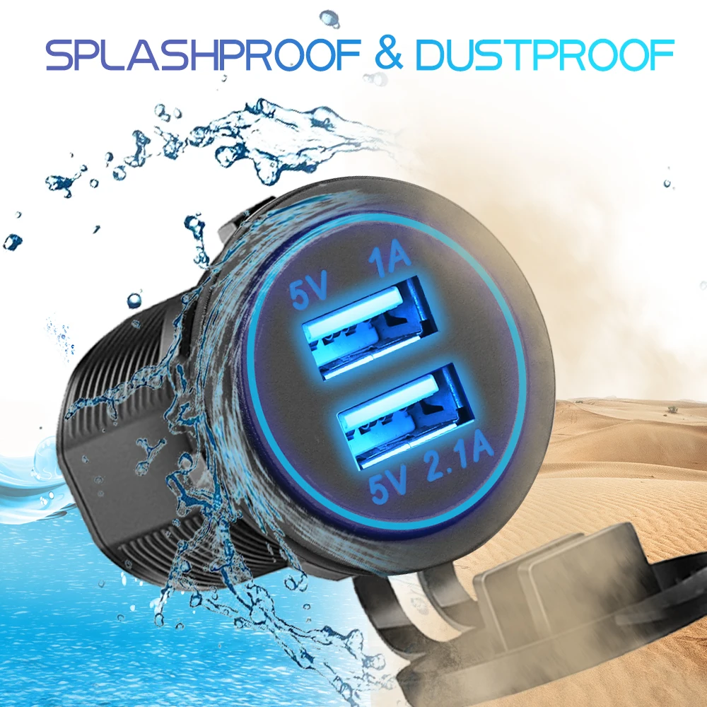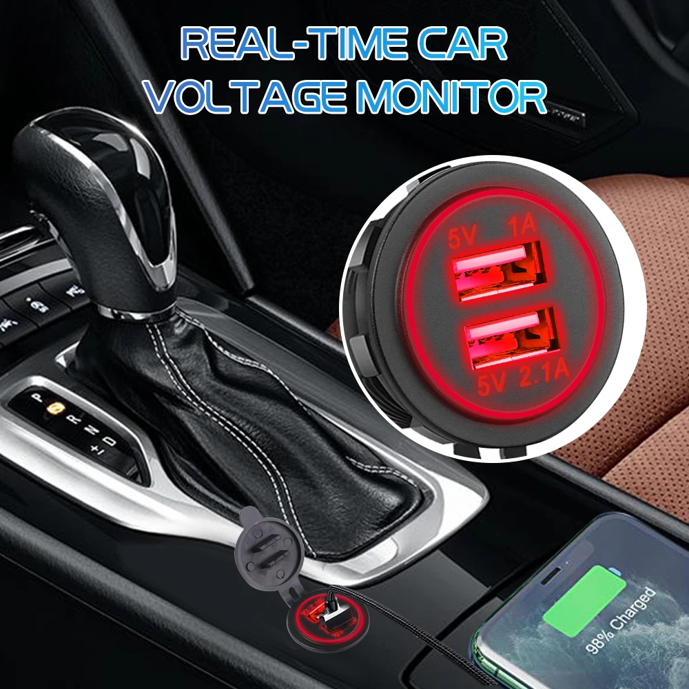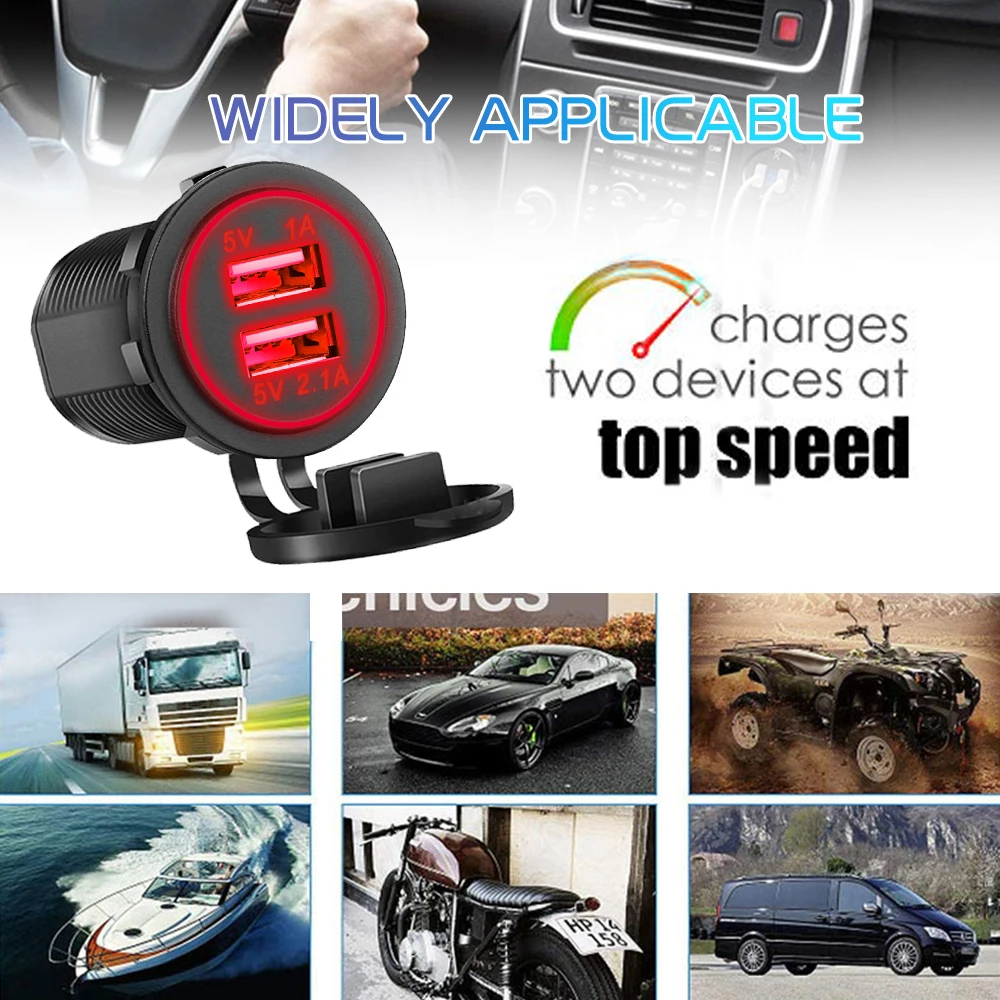 1x 12/32V Dual USB Socket Mount Car Charger Adapter 5V 2.1A+1