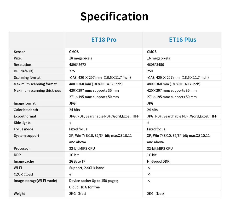 CZUR Book Scanner ET16 Plus High Speed 16MP, Max A3 Size Document Support OCR Function Compatible with Windows Mac for Office