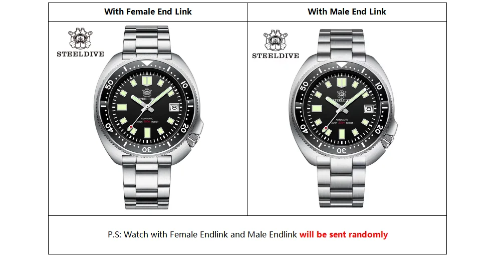 For watch with SS bracelet and our steeldive rubber and, there is engraved logo on the clasp ( no logo version has logo on clasp too, if you do mind, please choose other strap)