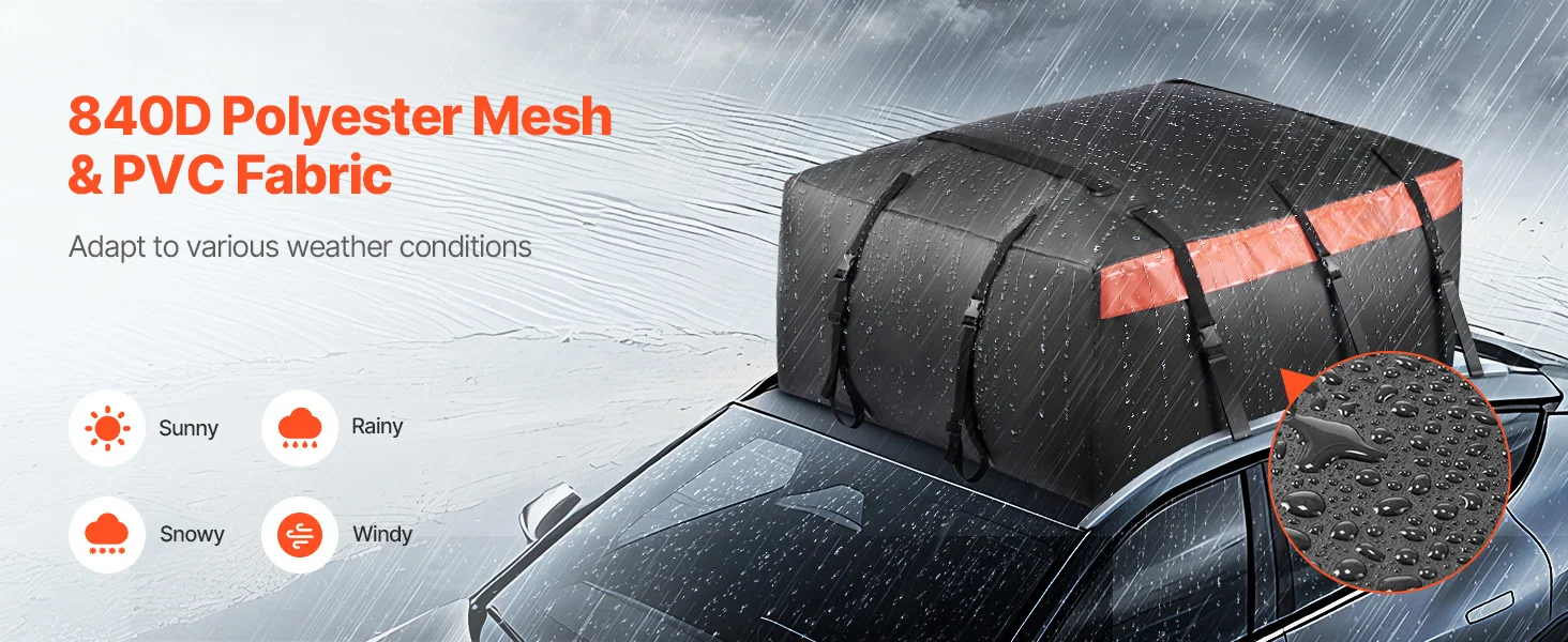 Made from high-quality 840D PVC, this rooftop cargo bag offers superior resistance to abrasion, ensuring long-lasting durability and protection for your belongings.