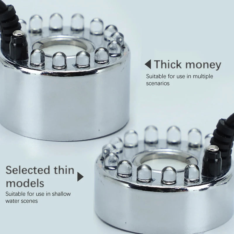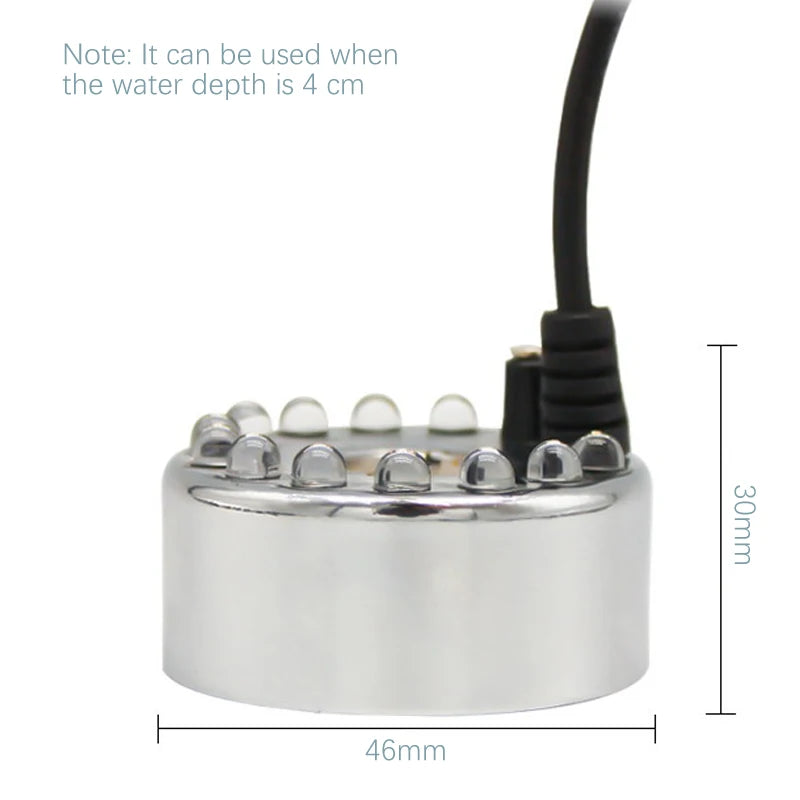 Ulstrasonic Mist Machine, provide a large amount of mist and filter unpleasant smell in the water with electro and ultrasonic technology. Also use as Air humidifier for your home or office. Ideal for Photography, Water, Fountain, Pond, Rockery, Fish Tank, Vase, Birdbath, etc.